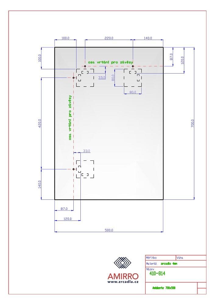 Montáž: U zrcadel s osvětlením doporučujeme vývod elektřiny umístit „na střed zrcadla“. Celková tloušťka zrcadla včetně podsvícení je cca 3,5 cm.