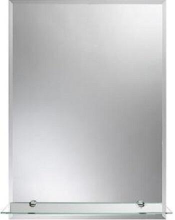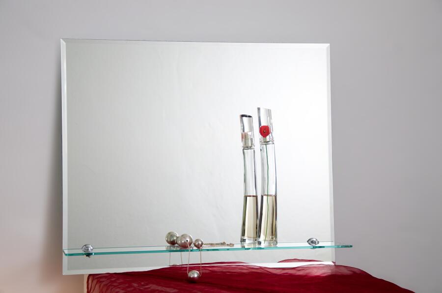 Zrcadla o síle 4mm lemované fazetou 10mm širokou je vybavené poličkou ze skla silného 5 mm s leštěnou hranou. Součástí jsou 2 závěsy k pověšení na šířku.