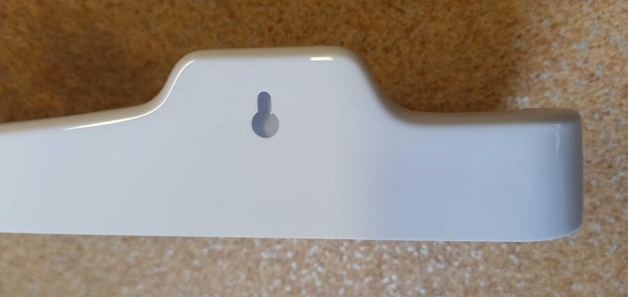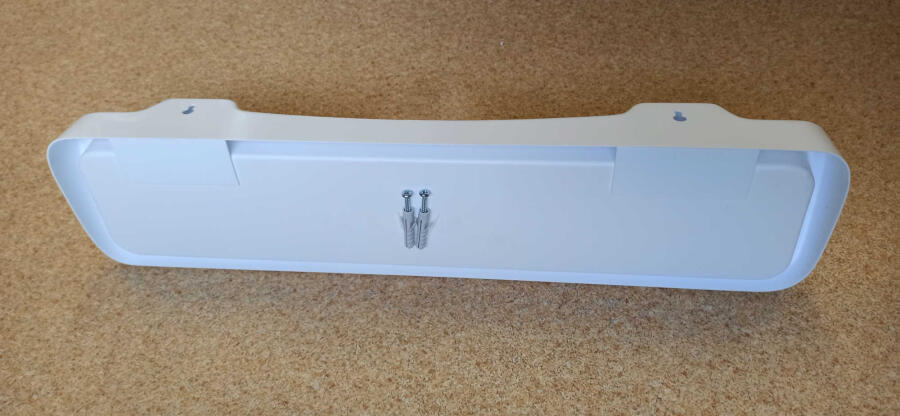 Plastová polička bílé barvy. Rozměry: šířka 45 cm, hloubka 13,5 cm, součástí balení jsou 2 ks hmoždinka do zdi a šroub