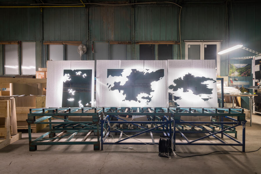 Za účelem výstavy je zrcadlo vybaveno bílou textilní šňůrou do zásuvky, ale ideálně se dá zapojit přímo do sítě s vypínačem na zdi.