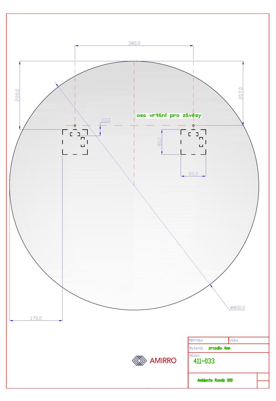 Montáž: U zrcadel s osvětlením doporučujeme vývod elektřiny umístit „na střed zrcadla“.