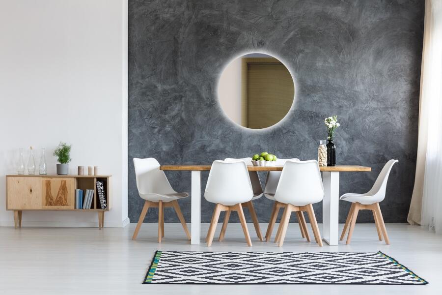 Zrcadlo kruh s příjemným LED podsvícením do stran po celém obvodu.