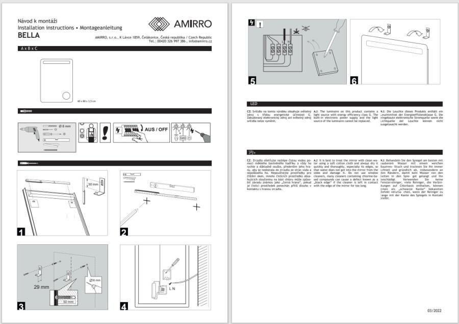 Zrcadlo s LED osvětlením a zvětšovacím zrcátkem. U zrcadel s osvětlením doporučujeme vývod elektřiny umístit „na střed zrcadla“.