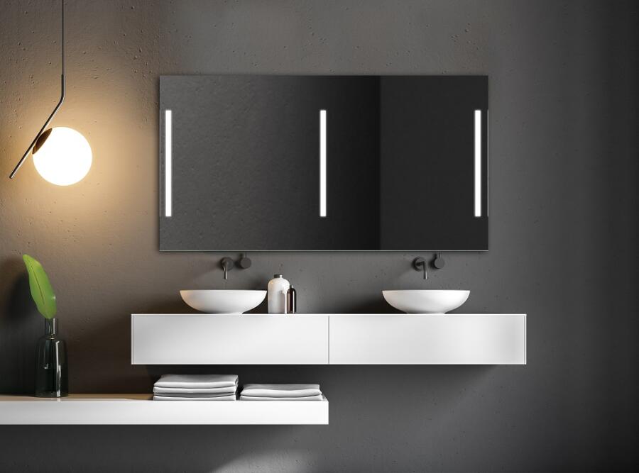 Zrcadlo se zářivkovým osvětlením, tři podsvícené pruhy