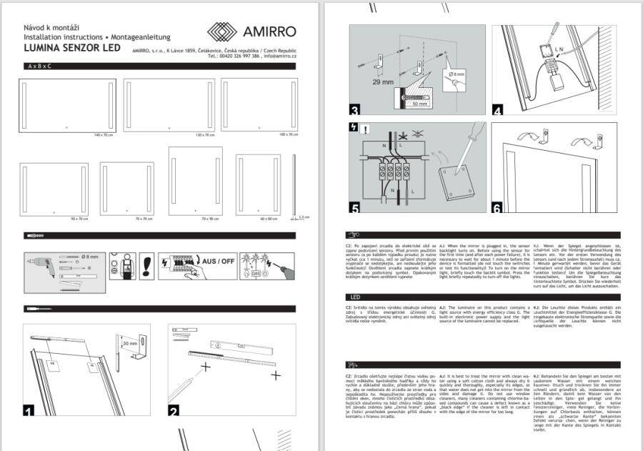 Zrcadlo LUMINA SENZOR LED je osvětlené LED diodami, které vynikají svojí nízkou spotřebou a dlouhou životností a navíc se rozsvítí prakticky okamžitě. Zrcadlo se rozsvěcí dotykovým sensorem. Senzor je jemně podsvícený, najdete jej snadno i v naprosté tmě. Senzor vám umožní snadno ovládat LED pásek, u kterého si můžete nastavit barvu světla (2700-6500K), takže si vždy užijete dokonalé osvětlení přesně podle svých preferencí. Montáž: U zrcadel s osvětlením doporučujeme vývod elektřiny umístit „na střed zrcadla“.