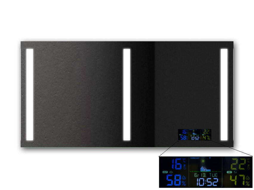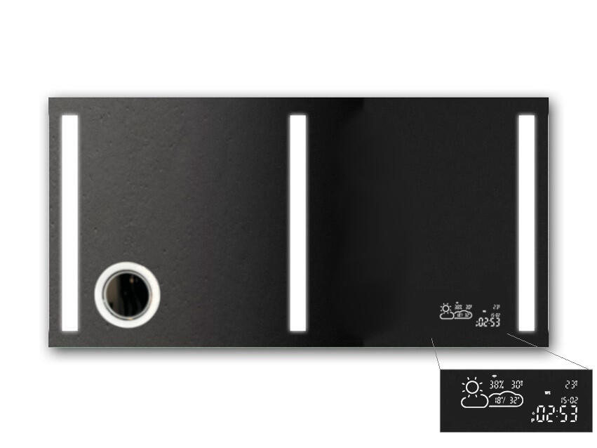Podsvícené pruhy jsou široké 4 cm a končí 5 cm před hranou zrcadla. Když si nakonfigurujete zrcadlo bez vypínače nebo s mechanickým vypínačem, tak je barva světla: 4000 °K (neutrální), pokud si vyberete ovládání zrcadla senzorovým vypínačem, můžete jím barvu LED libovolně měnit v rozmezí 2700K-6500K (od teplé bílé, přes neutrální až do studené bílé). LED pásek je orientován dopředu, krásně Vás osvětlí při líčení a holení. Zrcadlo je vybaveno úchyty (závěsy i vhodné háky na zeď) pro svislé zavěšení a splňuje druh ochrany IP44. Celková tloušťka zrcadla včetně podsvícení je cca 4 cm. Montáž: U zrcadel s osvětlením doporučujeme vývod elektřiny umístit „na střed zrcadla“ - u tohoto zrcadla však musí být vývod vlevo či vpravo dle umístění vypínače. Při absenci vypínače umístěte vývod vpravo.