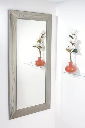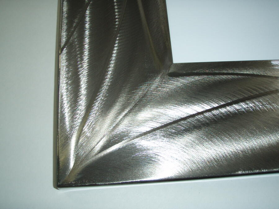 Rozměry: 70 a 160 cm. Lze pověsit na šířku i na výšku. Zrcadlo v širokém, lakovaném, kovovém, "kartáčovaném", rámu.
