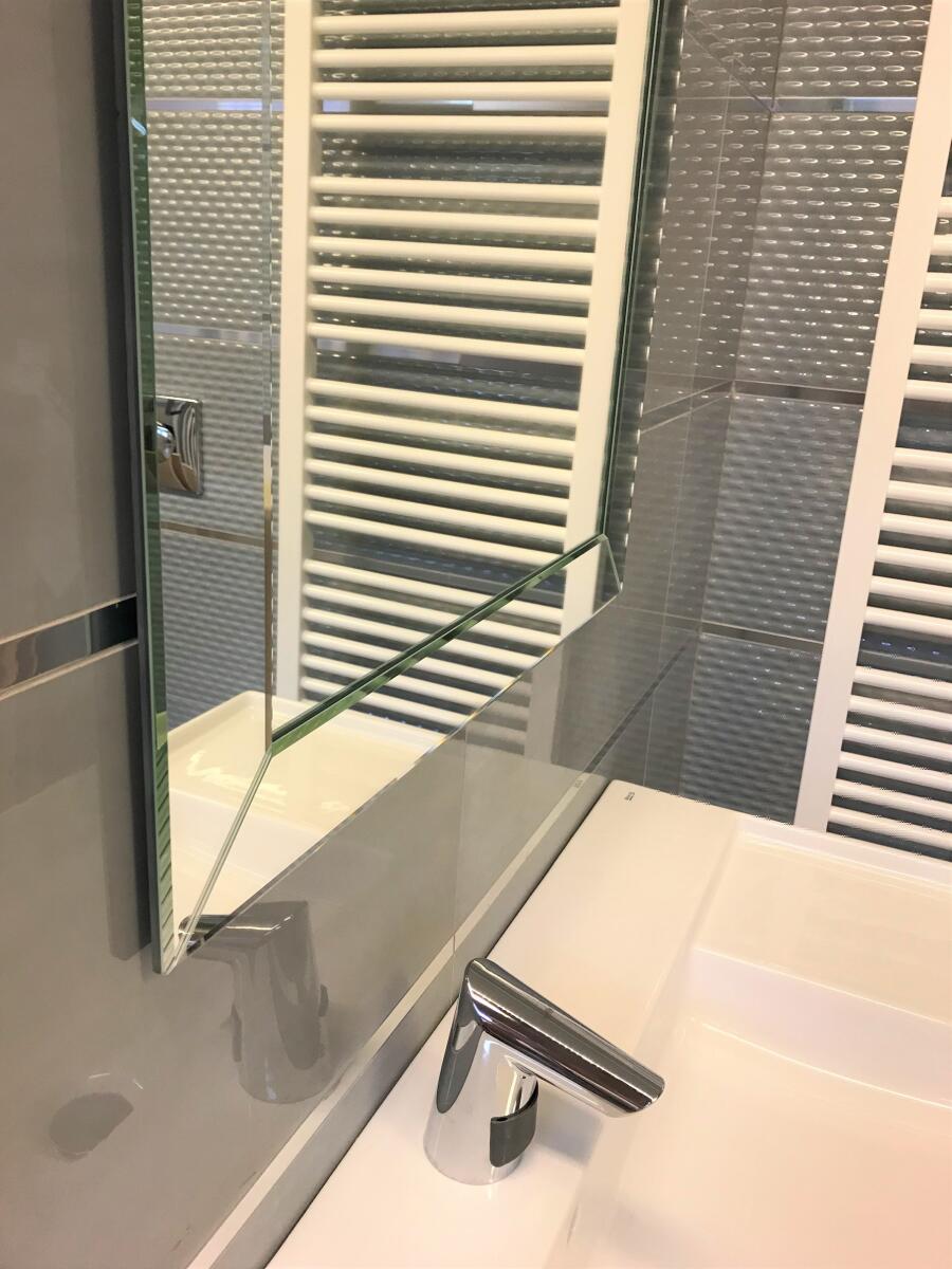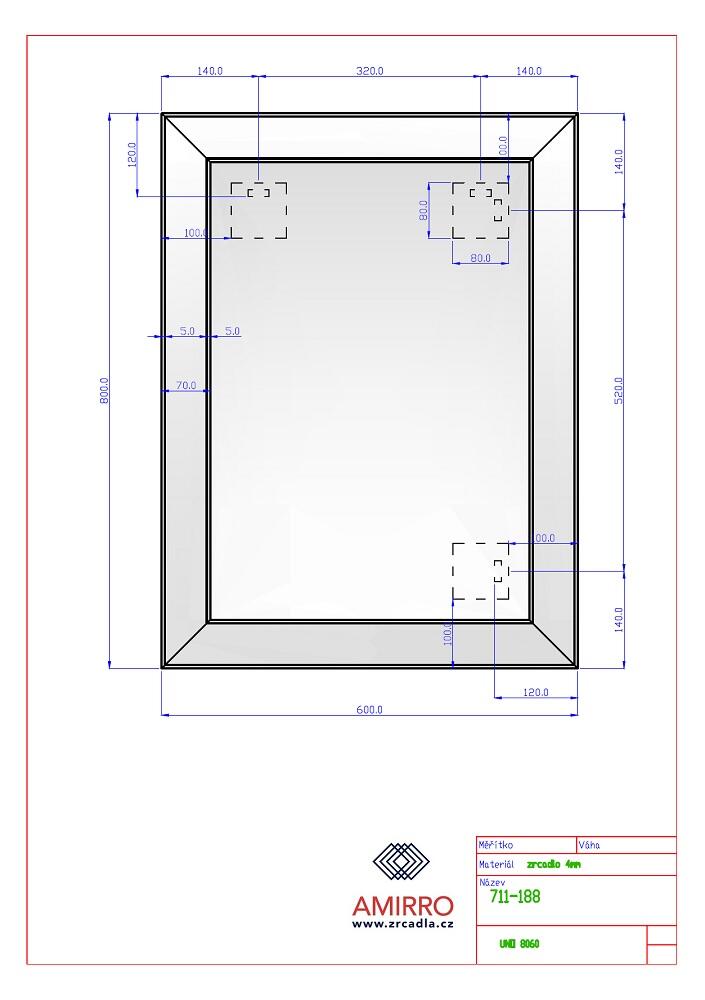 Rozměry: 60 a 80 cm. Lze pověsit na šířku i na výšku. Zrcadla o síle 5 mm zdobené 7 cm širokými lištami zdobenými strmou fazetou. Zrcadlo dodáváme včetně 3 závěsů.