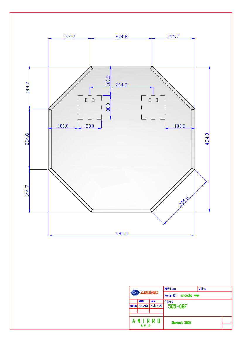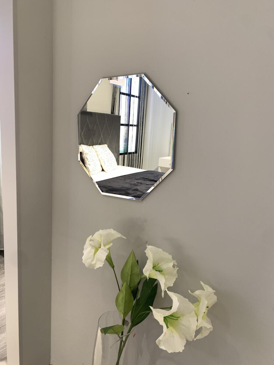 Rozměry: 50 cm. Zrcadlo-osmihrany s fazetou 10 mm rozzáří každou místnost. Zrcadlo je silné 4 mm a je vybaveno 2 ks závěsy k zavěšení.