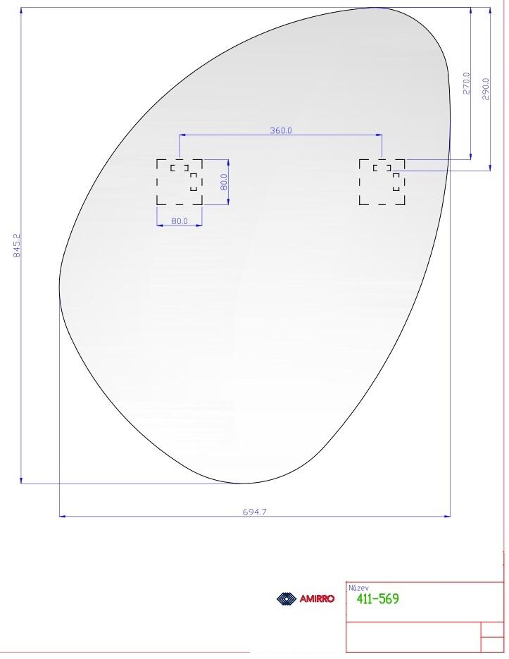 Rozměry: 90 cm a 60 cm. Nevšední zrcadlo organického tvaru o síle 4mm s leštěnou hranou - včetně závěsů.