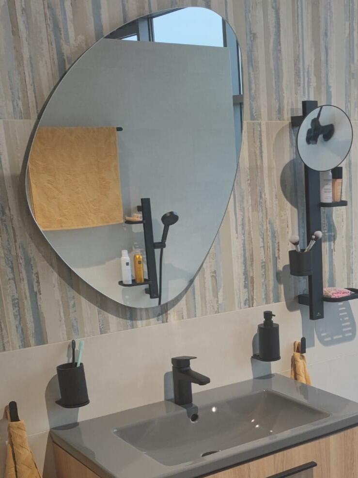Zrcadlo organického tvaru s leštěnou hranou - včetně závěsů