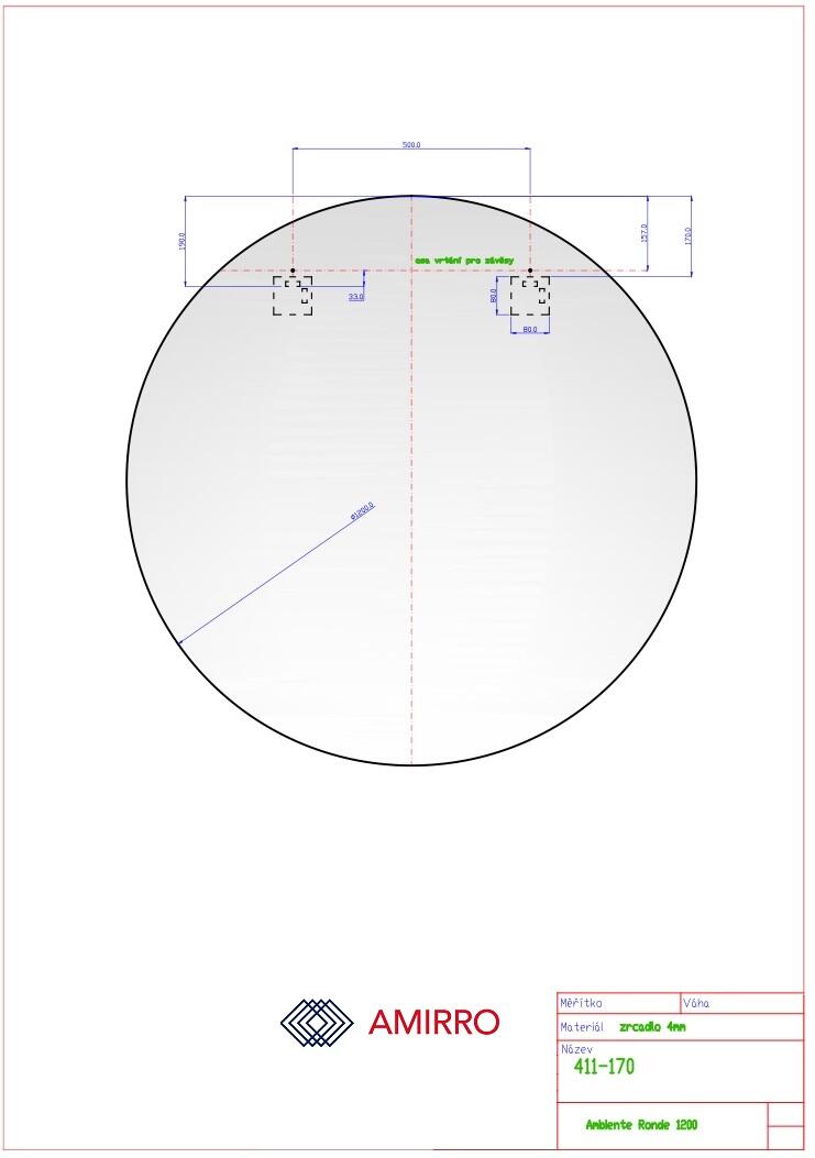 Rozměr: průměr 120 cm. Zrcadlo kruh s příjemným LED podsvícením do stran po celém obvodu. Svítidlo na tomto výrobku obsahuje světelný zdroj s třídou energetické účinnosti F. Splňuje druh ochrany IP44. Spotřeba el. energie je 36W. Další informace k použitému LED pásku: Barva světla: 4000 °K (neutrální), Svítivost: 4680 lm. Zrcadlo je vybaveno závěsy a příslušnými háky na zeď. Je v provedení bez vypínače a rozsvěcí se tedy k tomu určeným vypínačem na zdi. Montáž: U zrcadel s osvětlením doporučujeme vývod elektřiny umístit „na střed zrcadla“. Celková tloušťka zrcadla včetně podsvícení je cca 3,5 cm.