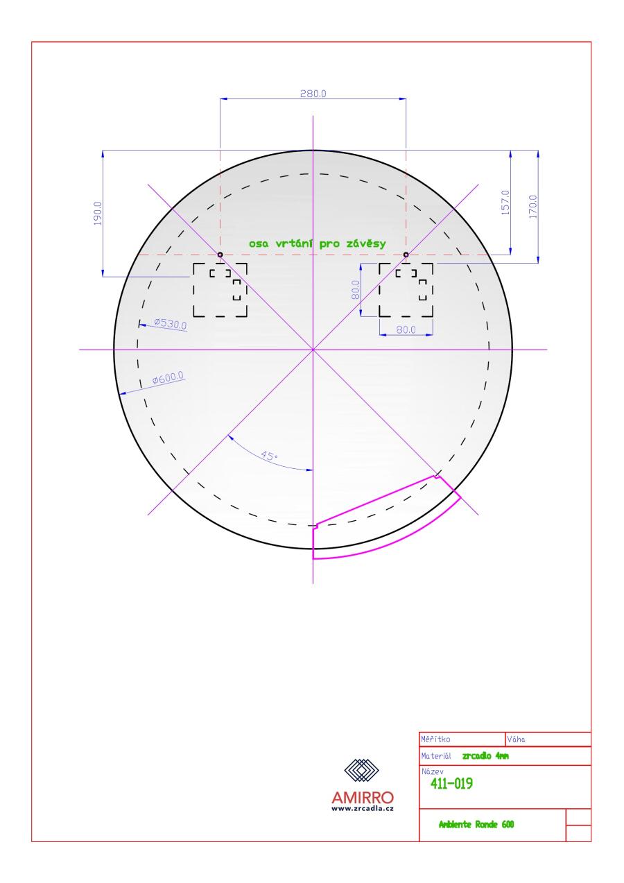Zrcadla kruh s příjemným LED podsvícením do stran po celém obvodu.