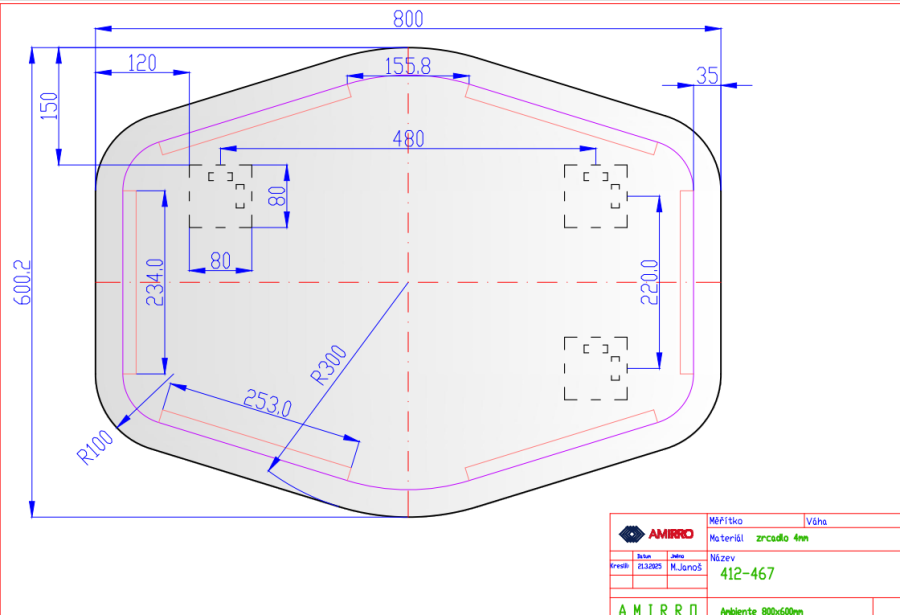 Celková tloušťka zrcadla včetně podsvícení je cca 3,5 cm..