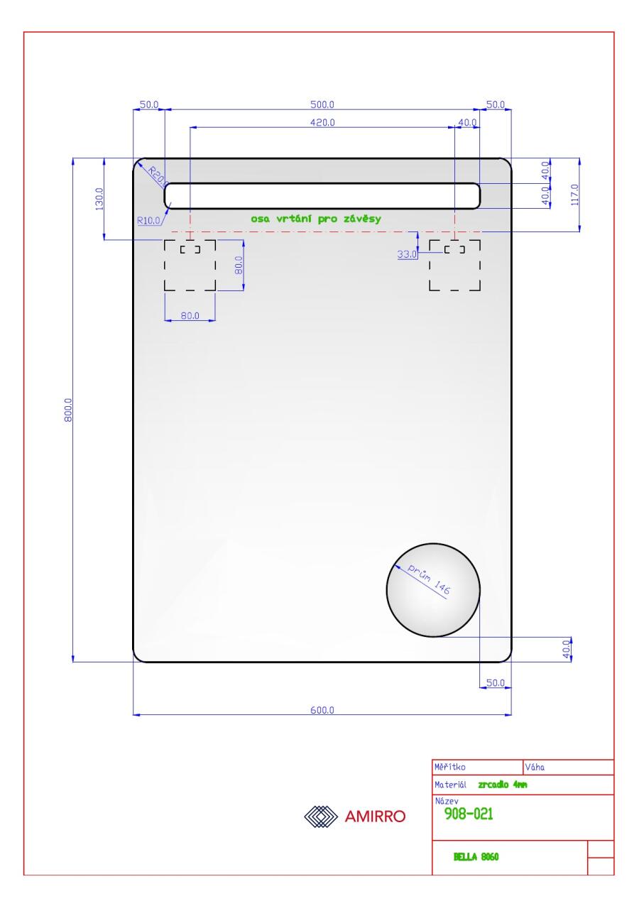 Montáž: U zrcadel s osvětlením doporučujeme vývod elektřiny umístit „na střed zrcadla“.