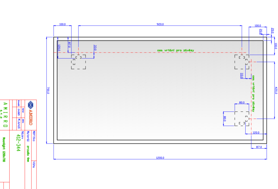 Montáž: U zrcadel s osvětlením doporučujeme vývod elektřiny umístit „na střed zrcadla“.
