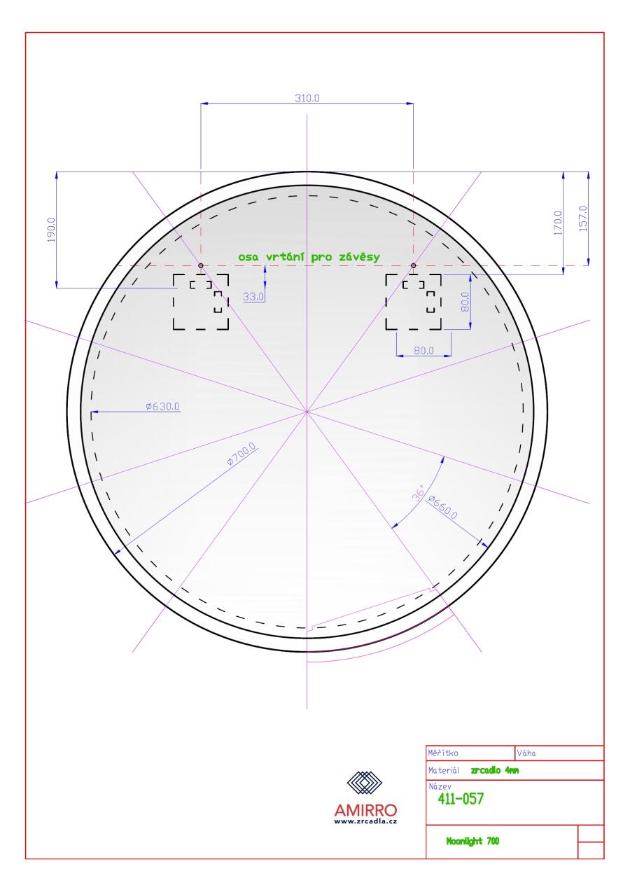 Rozměr: průměr 70 cm, pískovaný rámeček 2 cm.