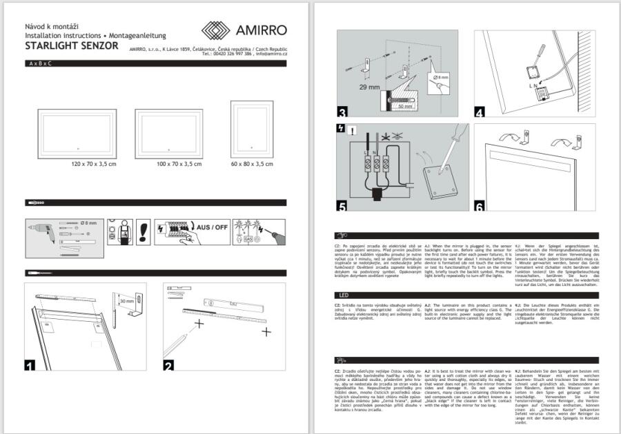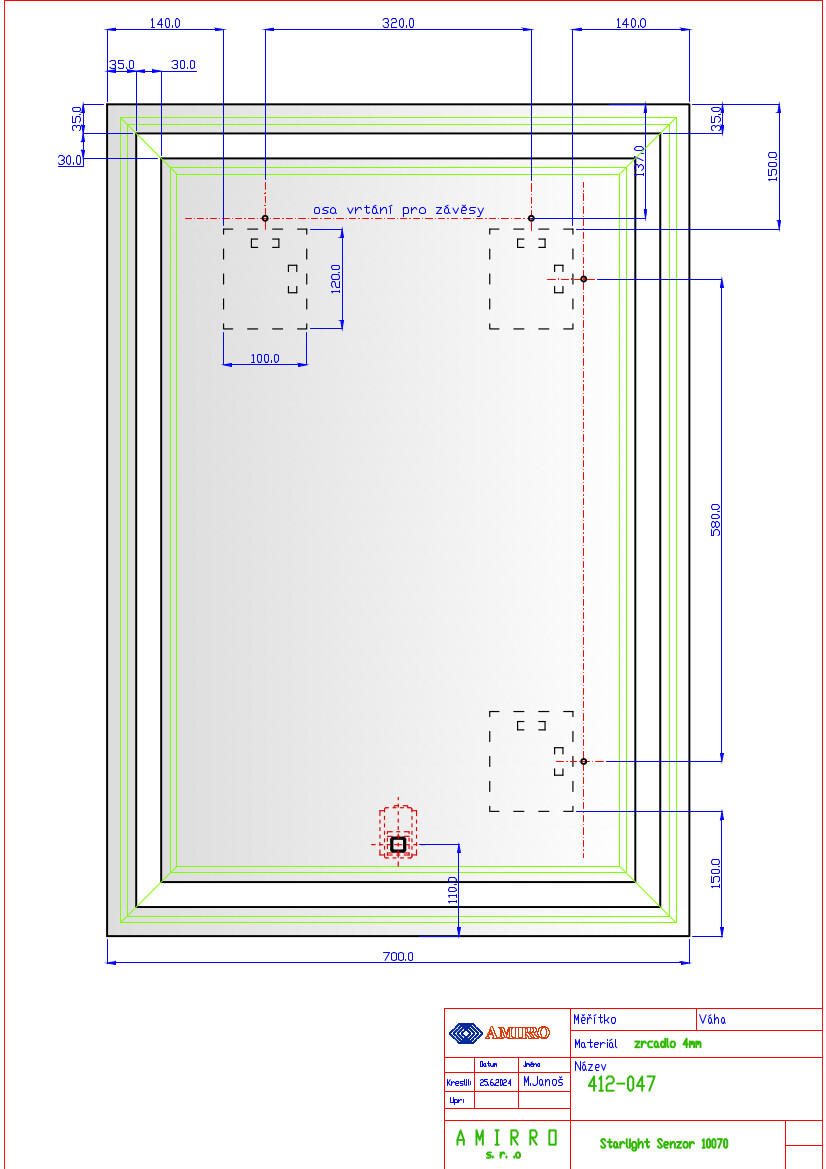 Zrcadlo o rozměrech 100 × 70 s podsvícenými pruhy vynikají obzvláště velikou svítivostí, zdroj světla je totiž nasměrován přímo na Vás a jsou tak ideálním pomocníkem při líčení či holení. Zrcadlo je možné zavěsit na výšku i na šířku. Zrcadlo splňuje stupeň krytí IP44 a to zajišťuje jeho bezpečné použití i ve vlhkém prostředí koupelny. Jemně podsvícený senzor ve spodní části zrcadla umožňuje snadné zapnutí, i když je tma.