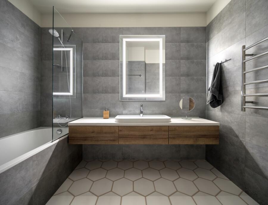 U zrcadel s osvětlením doporučujeme vývod elektřiny umístit „na střed zrcadla“.