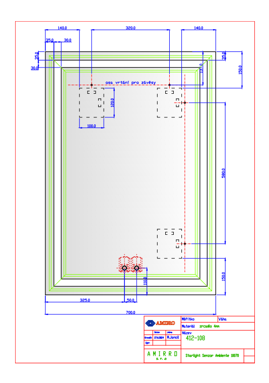 U zrcadel s osvětlením doporučujeme vývod elektřiny umístit „na střed zrcadla“.