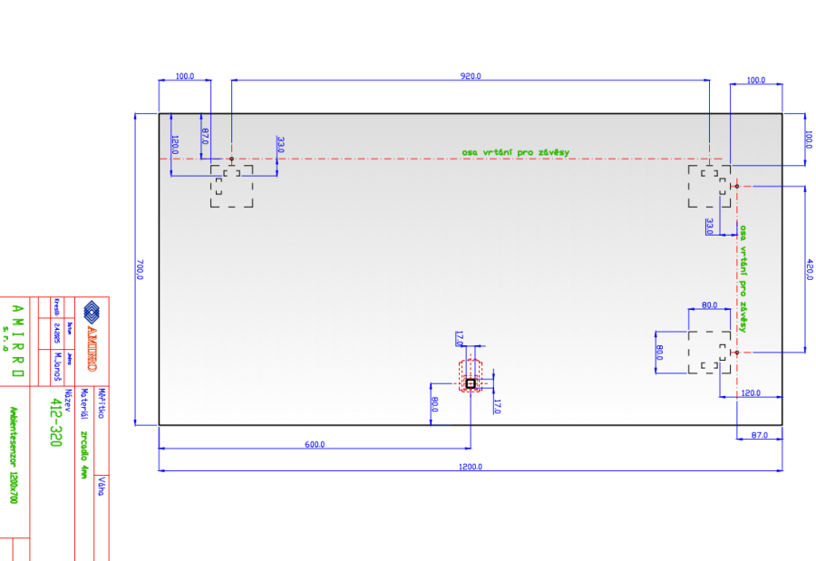 Montáž: Zrcadlo je vybaveno závěsy i vhodnými háky na zeď. U zrcadel s osvětlením doporučujeme vývod elektřiny umístit „na střed zrcadla“.