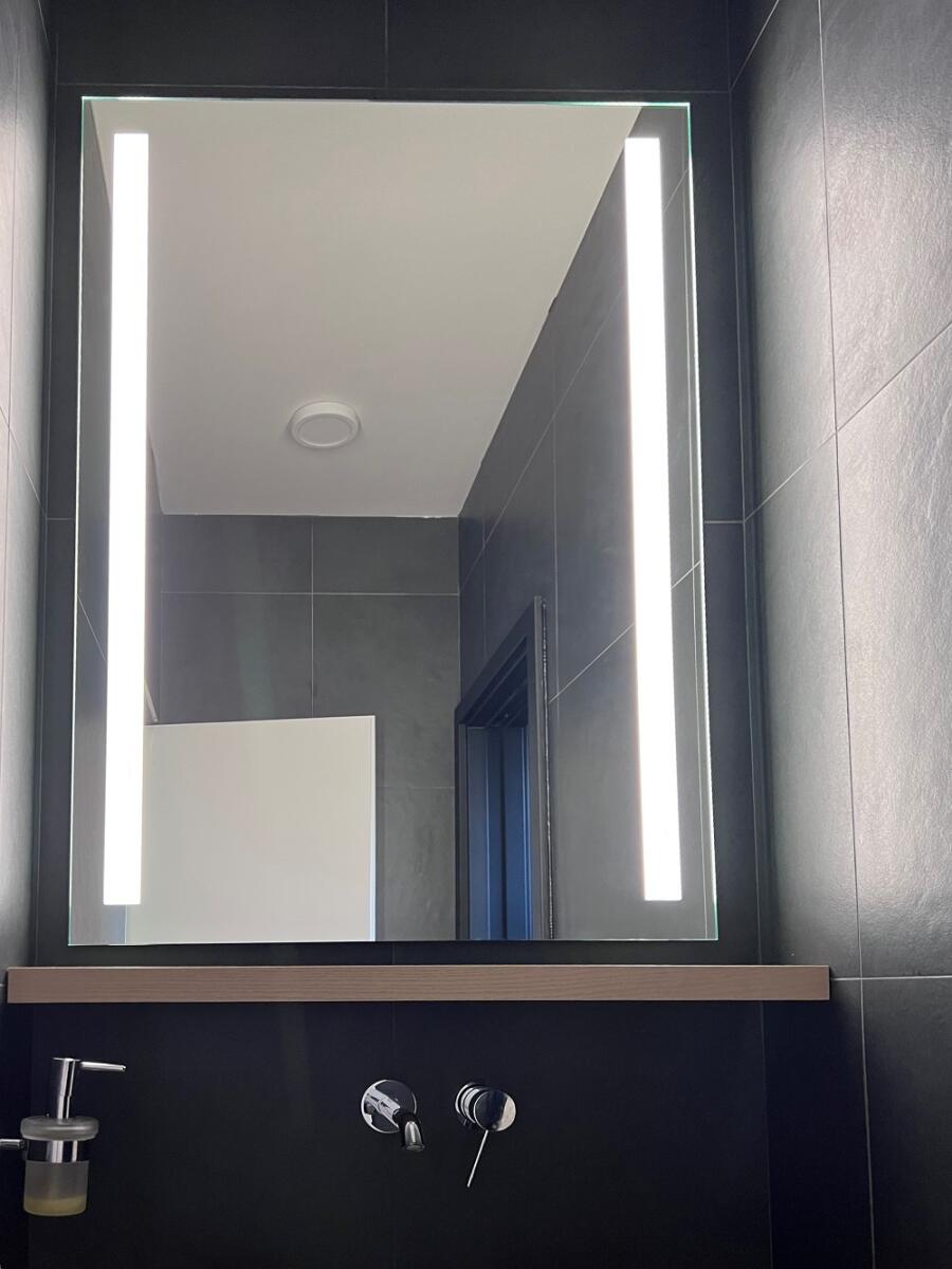 Zrcadlo na míru se dvěma LED podsvícenými pruhy a senzorem