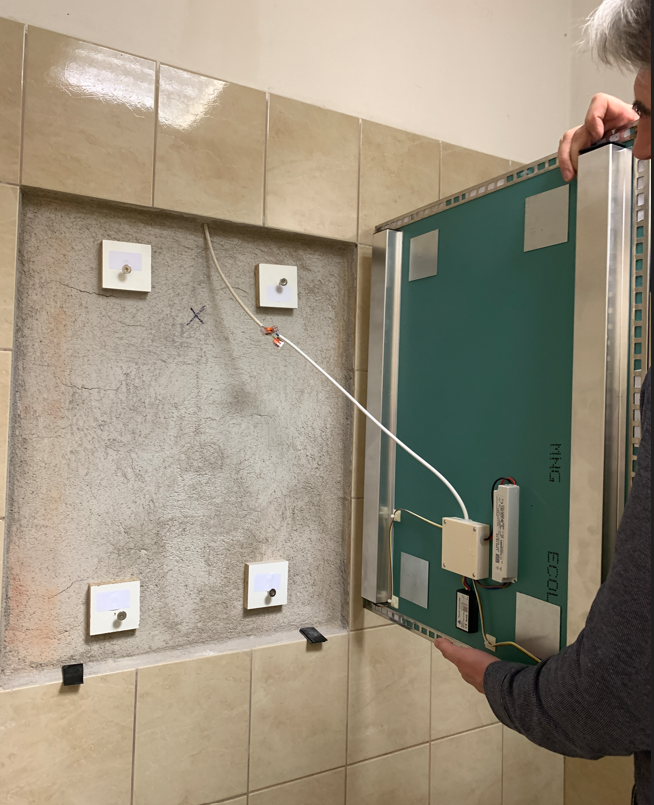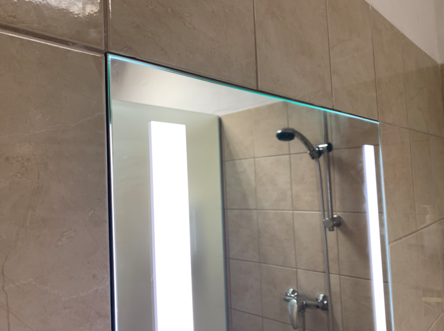 U zrcadel s osvětlením doporučujeme vývod elektřiny umístit „na střed zrcadla“.