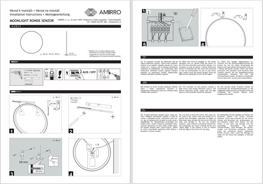 Zrcadlo s průsvitným LED podsvícením po celém obvodu, šířka okraje má 2 cm, okraj je pískovaný a díky tomu vzniká efekt mléčného skla, přes který světlo jemně a neoslňujícím způsobem prosvítá. Zrcadlo je v provedení s dotykovým senzorem, který je jemně podsvícený, takže ho vidíte i v naprosté tmě. Senzor vám umožní snadno ovládat LED pásek, u kterého si můžete nastavit barvu světla (2700-6500K). U zrcadel s osvětlením doporučujeme vývod elektřiny umístit „na střed zrcadla“.