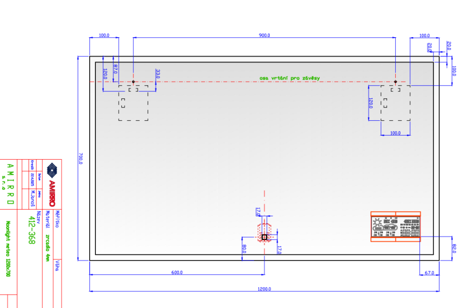 Doporučená montáž: vývod elektřiny na střed zrcadla