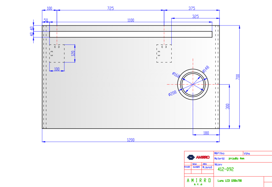 Zrcadlo Luna je osvětlené LED diodami, které vynikají svojí nízkou spotřebou a dlouhou životností a navíc se rozsvítí prakticky okamžitě. Dále zrcadlo má praktické kosmetické zrcátko, které je ideálním pomocníkem při líčení či holení. Vodorovný pruh je 4 cm široký a poskytuje tak dostatečný rozptyl světla do popředí. Osvětlená zrcadla Amirro mají navíc zdroj světla nasměrován přímo dopředu. Je v provedení s vypínačem. Svítidlo na tomto výrobku obsahuje světelný zdroj s třídou energetické účinnosti G. Splňuje stupeň krytí IP44. Montáž: U zrcadel s osvětlením doporučujeme vývod elektřiny umístit „na střed zrcadla“.