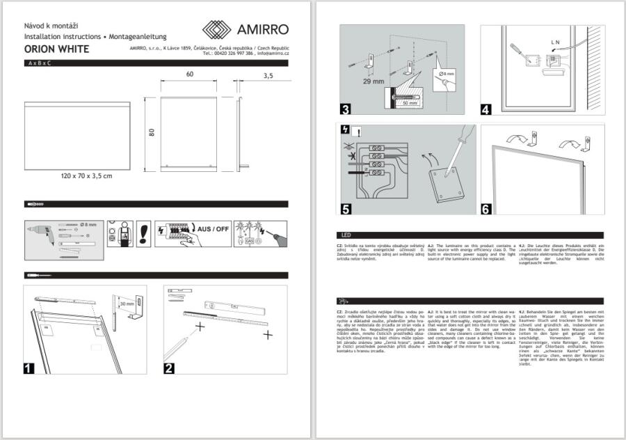 Pás LED diod je umístěn v horní difůzní liště. K zapojení můžete využít integrovaný vypínač, nebo zrcadlo přímo napojit na klasický vypínač.