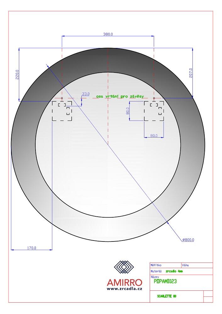 Rozměr: černý podklad průměr 80 cm, zrcadlo průměr 60 cm s fazetou 1 cm