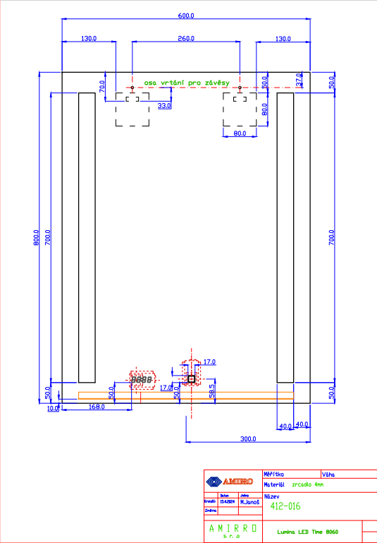 Zrcadlo 5mm s leštěnou hranou a s LED lampičkou