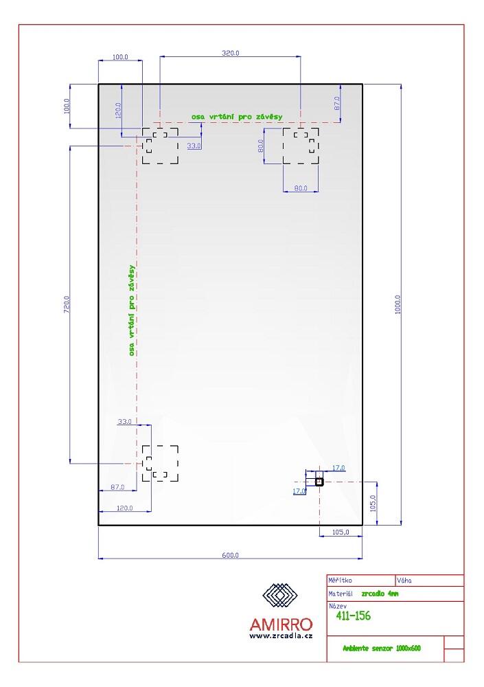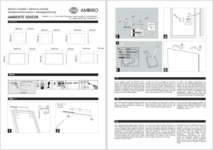 Montáž: Zrcadlo je vybaveno závěsy i vhodnými háky na zeď . U zrcadel s osvětlením doporučujeme vývod elektřiny umístit „na střed zrcadla“.