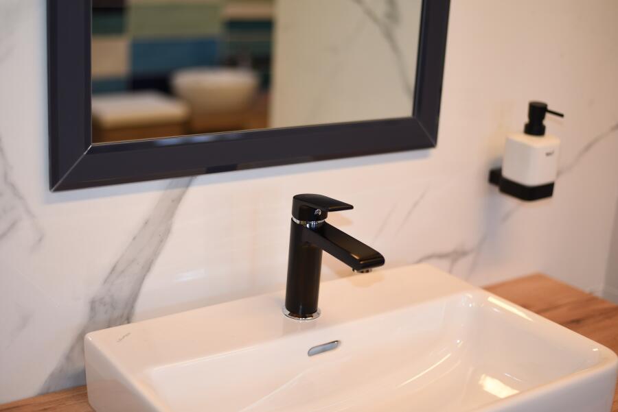 Zrcadla zdobená matnými fazetovanými lištami tzv. matelac v odstínu černá antracit je vhodným designovým dopňkem k oblíbeným černým koupelnovým doplňkům. Zrcadlo je vybavené závěsy pro pověšení na výšku i na šířku a příslušnými montážními prvky na zeď.